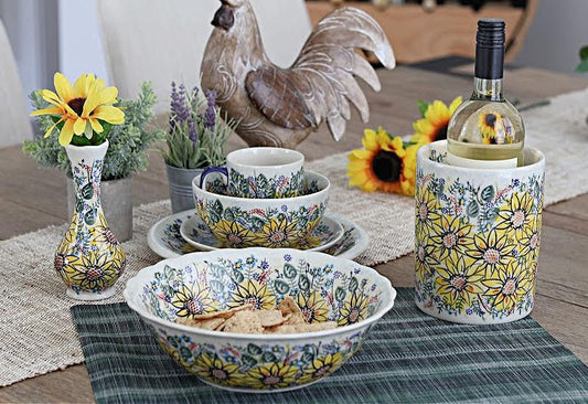 Blue Rose Polish Pottery Sunflower Maze Small Bud Vase
