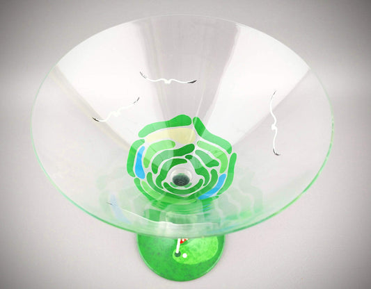 Golden Hill Studio Hand Painted Martini Glasses Set of 2 - Peruvian Splendor Lime Green Collection - Hand Painted Glassware by USA Artists - Unique and Decorative Martini Glasses, Kitchen Table Décor