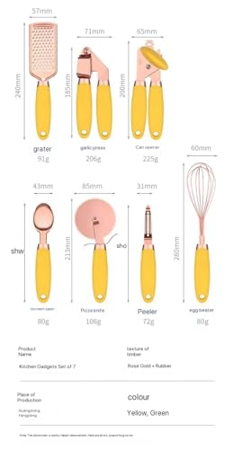 7-Piece Set of Kitchen Tools and Gadgets with Anti-Slip Handles (Rose Gold and Pink)