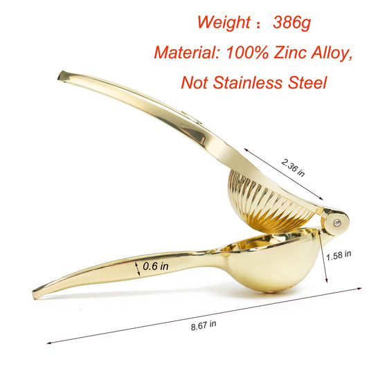 Agirlvct Lemon Squeezer, Heavy Duty Zinc Manual Lemon Juicer, Threaded Groove Fresh Small Oranges Limes Juicer Hand Press Manual Press for Home Restaurant Kitchen Accessories Utensils(Gold)