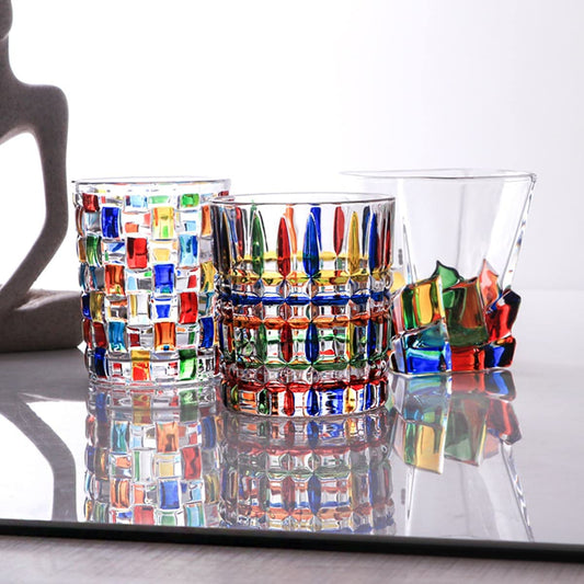 Aebor Colorful Drinking Glasses, Hand Painted Colored Water Glasses, Multicolor Water Glasse,Whiskey Wineglass Glasses,Tumbler Glasses (Ice cube)
