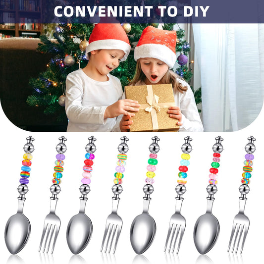 6-Piece Beadable Spoon Fork Set with 50 Assorted Large Hole Beads Stainless Steel Spoons and Forks, 3 Cute Spoons 3 Dinner Forks Bead Dessert Spoon for Party Favors DIY Project Bead Project