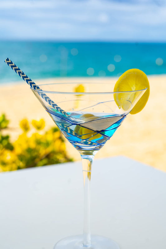 Antoni Barcelona Martini Glass Special Dry Cocktail 12 Oz. BLUE LINE Refreshment Party Mediterranean Stunning Gift Drinkware Birthday Present Weddding Anniversary (Set 2)