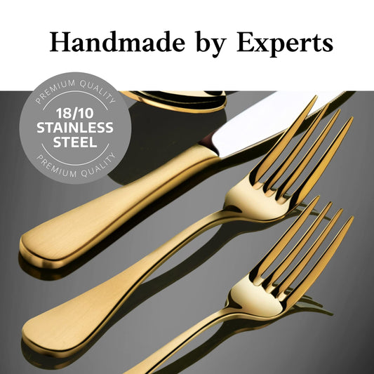 Artaste 56938 Rain 18/10 Stainless Steel Flatware 20-Piece Set, Gold Finish, Service for 4