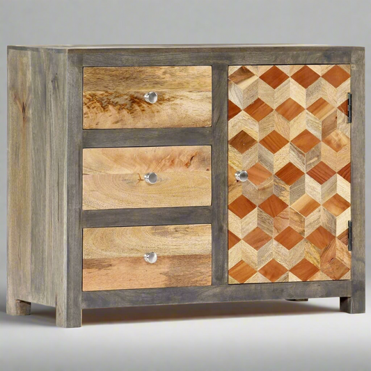 Solid Mango Wood vidaXL Side Cabinet in Stylish Grey with Geometric Design