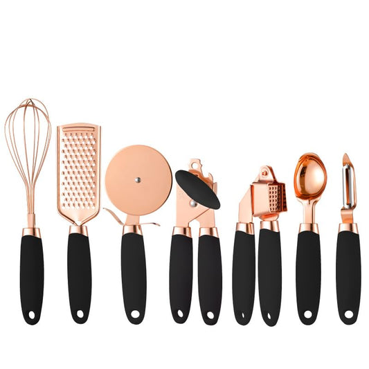White & Gold Kitchen Tools and Gadgets - Luxe 7PC Cooking Tools and Gadgets with Anti-Slip Handles, Gold Utensils Set, Gold Kitchen Accessories,Premium Kitchen Gadget Set (Rose gold & black)