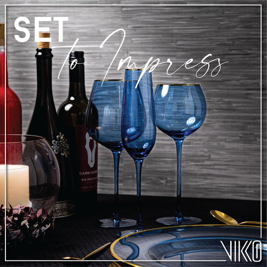 Vikko Champagne Flutes, 8.5 Ounce Toasting Champagne Flute, Blue with Gold Rim Crystal Clear Champagne Glasses, Set of 2 Elegant Sparkling Wine Glasses