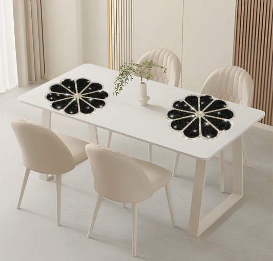 Washable Waterproof Diamond Circle Placemats for Round Tablescape Decor for Dinner and Kitchen Bling Placemats for Weddings & Special Events (Black)