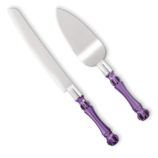 Wedding Cake Knife and Server Set Purple, Cake Cutter and Pie Spatula, Cake Server and Knife Set of 2 with Acrylic Handles, 1.2mm Thick Blades, Cutting Set for Wedding Cake, Birthdays, and Parties