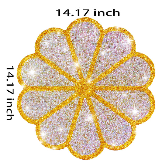 Washable Waterproof Diamond Circle Placemats for Round Tablescape Decor for Dinner and Kitchen Bling Placemats for Weddings & Special Events (Yellow)