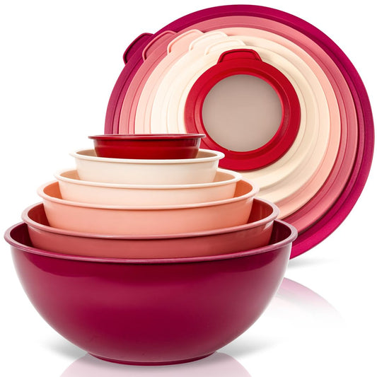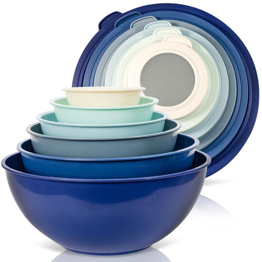 WHYSKO Mixing Bowl Set, 12 Piece Colorful Plastic Mixing Bowls with Lids Set for Food Prep Storage and Serving, Dishwasher Safe Microwave Safe for Kitchen Baking Cooking