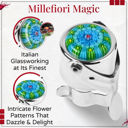 Wine & Champagne Stoppers 5 Pack – Professional Grade & Durable – Patented technology with an Airtight Seal Preserves Champagne, Wine, Cava & Prosecco – Millefiori Glass Top by Evan James Designs