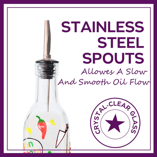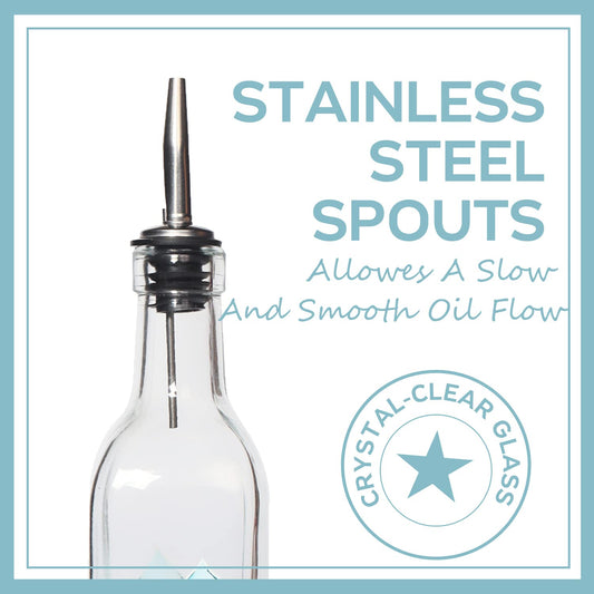 YIYUKODO 17oz Hand Painted Glass Olive Oil Bottle - 500ml Green Oil & Vinegar Cruet with Pourers and Funnel - Olive Oil Carafe Decanter for Kitchen (chef)