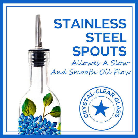 YIYUKODO 17oz Hand Painted Glass Olive Oil Bottle Dispenser - 500ml Green Oil & Vinegar Cruet with Pourers - Olive Oil Carafe Decanter for Kitchen (hydrangea)