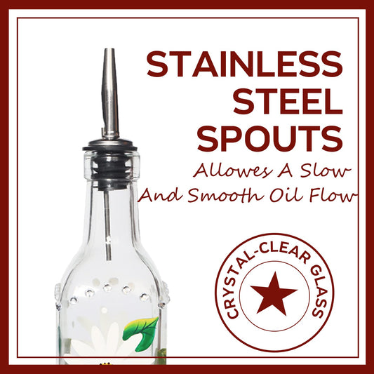 YIYUKODO 17oz Hand Painted Glass Olive Oil Bottle Dispenser - 500ml Green Oil & Vinegar Cruet with Pourers - Olive Oil Carafe Decanter for Kitchen (sunflower2)