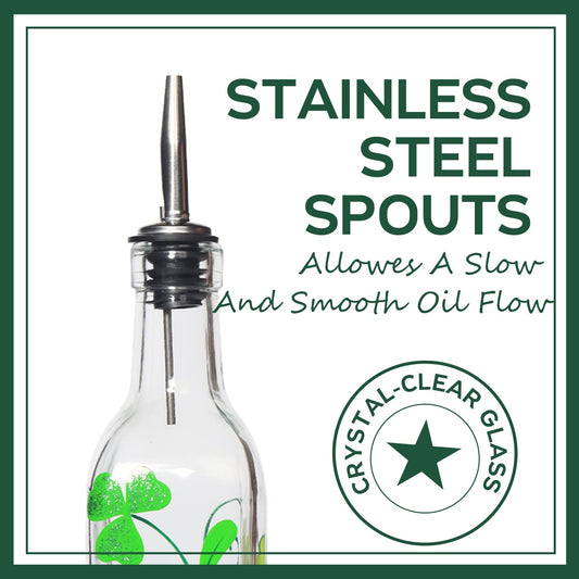 YIYUKODO 17oz Hand Painted Glass Olive Oil Bottle - 500ml Green Oil & Vinegar Cruet with Pourers - Olive Oil Carafe Decanter for Kitchen (Shamrock)