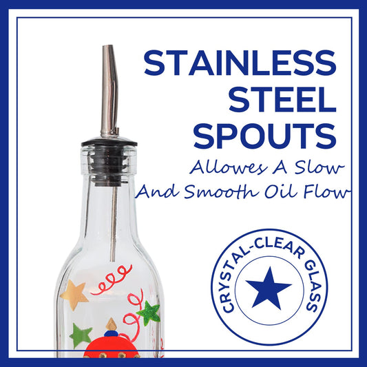 YIYUKODO 17oz Hand Painted Glass Olive Oil Bottle - 500ml Green Oil & Vinegar Cruet with Pourers and Funnel - Olive Oil Carafe Decanter for Kitchen (The Nutcracker)