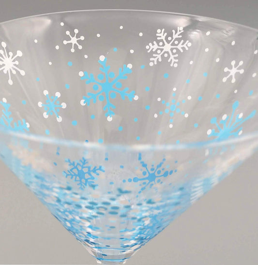 Blue and White Snowflake Martini Glass - Hand Painted - Winter, Pretty, Intricate Snow Flakes
