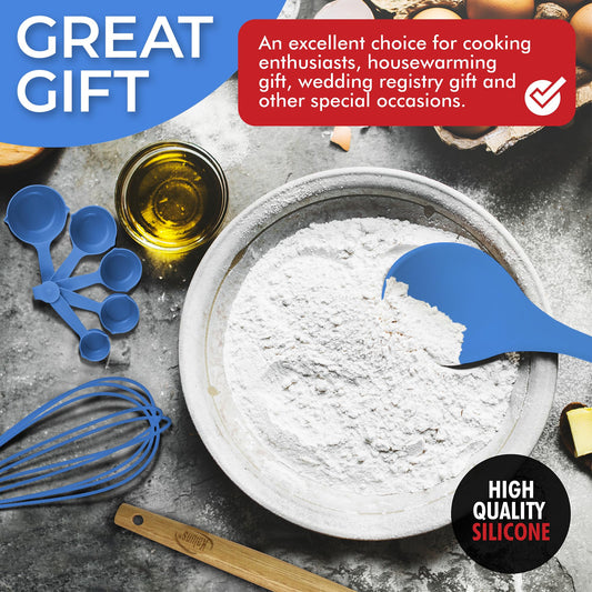 Blue 50-Piece Silicone Kitchen Utensils Set - Mothers's Day Gifts for Mom Wife Complete Kitchen Set 800°F Heat-Resistant Non-Stick Premium Silicone Cooking Utensils W Wooden Handles Gifts For Mothers