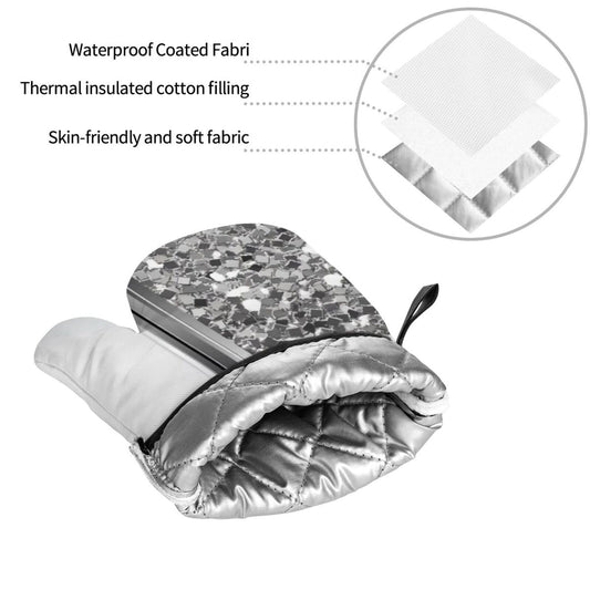 Silver Sparkle Glam Bling Oven Mitts and Pot Holders 4 Pcs Set,High Heat Resistant 500 Degree Extra Thicken Long Kitchen Cotton Oven Glove for Cooking