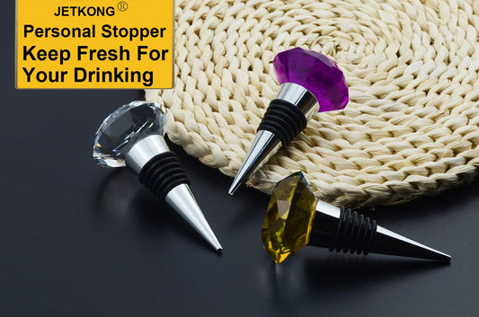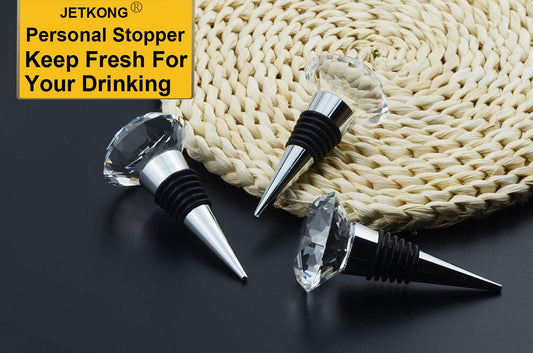JETKONG 3 Pcs Wine Stoppers Crystal Wine and Beverage Bottle Stopper Diamond Decorative Wine Bottle Stopper (Crystal)