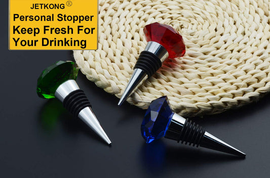 JETKONG 3 Pcs Wine Beverage Bottle Stoppers Reusable Diamond Plug Wine Corks Crystal Wine Stopper (Red Blue Green)