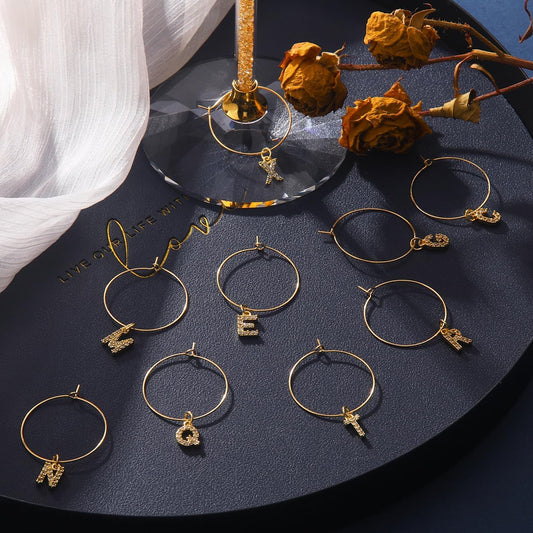 Pride & par Gold Bling Letter Wine Glass Charms 26 piece/Set Diamond Wine Glass Markers for Stem Glasses Shinny Wine Glass Decoration Mix & DIY for Weddings Parties