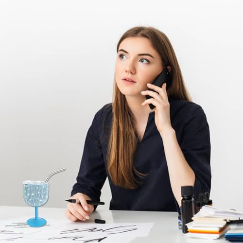INSTOME Rhinestone Stainless Steel Wine Glasses,4oz Bling Stemmed Stainless Steel Wine Tumbler with Lid and Straw for Camping,Picnics,Travel,Birthday Gifts for Family (blue, 4oz)