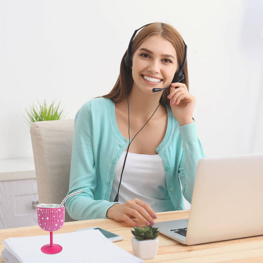 INSTOME Rhinestone Stainless Steel Wine Glasses,4oz Bling Stemmed Stainless Steel Wine Tumbler with Lid and Straw for Camping,Picnics,Travel,Birthday Gifts for Family (pink, 4oz)