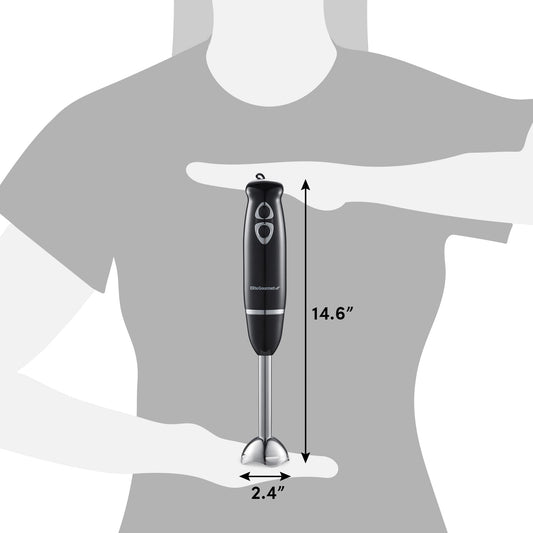 Elite Gourmet EHB1015 Immersion Hand Blender 500 Watts 2 Speed Mixing with Stainless Steel Blades, Detachable Wand Stick Mixer, Smoothies, Baby Food, Soup, Black
