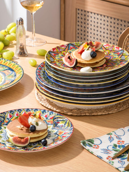 Bico Tunisian Salad Plates Set of 4, Ceramic, 8.75 inch, Microwave & Dishwasher Safe