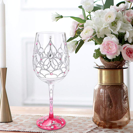 NymphFable Colorful Wine Glass Princess Crown Artisan Painted Glass 15 oz Novelty Gift for Birthdays,Weddings,Valentine's Day