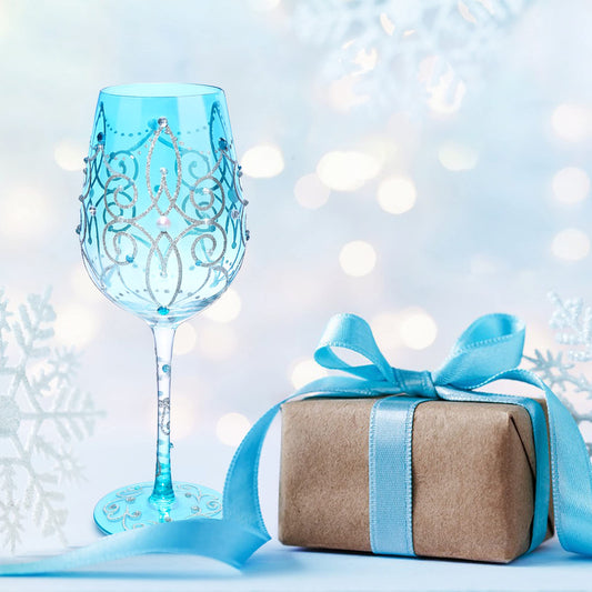 NymphFable Colorful Wine Glass Blue Princess Artisan Painted 15oz Personalised Gift for Birthdays Valentine's Day