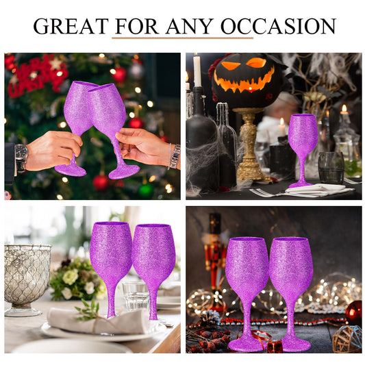 Singhoow Christmas Wine Glasses Set of 12, Glitter Long Stem Wine Glasses 13.5 oz Glitter Glass Wine Cups for Wedding, Anniversary and Home(Fuchsia)