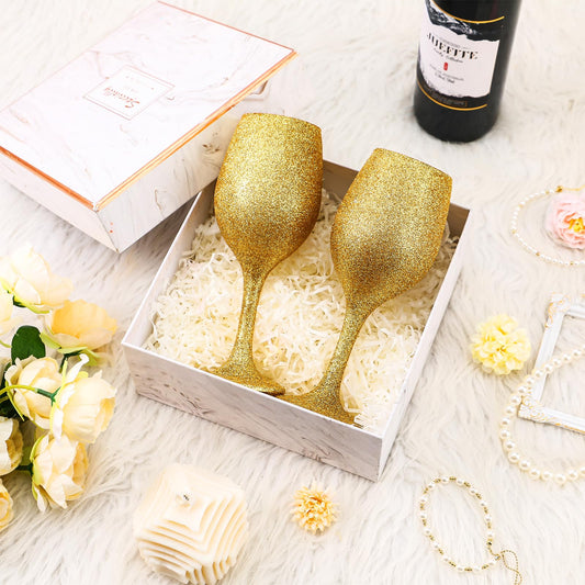 Singhoow Christmas Wine Glasses Set of 12, Glitter Long Stem Wine Glasses 13.5 oz Glitter Glass Wine Cups for Wedding, Anniversary and Home(Gold)