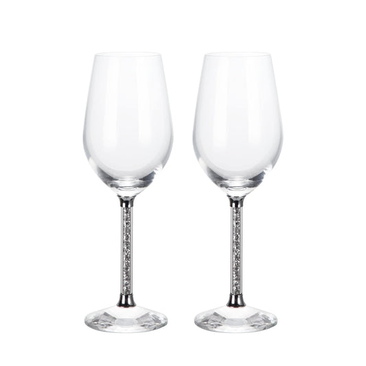 sugarchef Wine Glasses 2 Pieces Long Stem Filled with Crystals Elegant Wine Glasses for Home,Wedding, Parties, Anniversary (Silver)