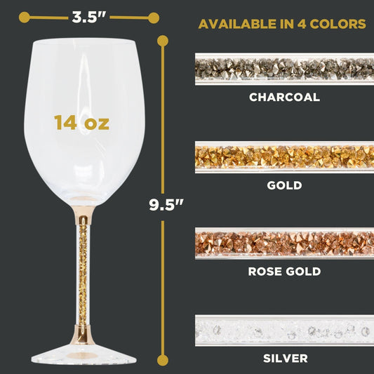 Trinkware Set of 2 Wine Glasses - Rhinestone DIAMOND Studded With Silver Rim - Long Stem, 16oz, 10-inches Tall – Elegant Glassware And Stemware