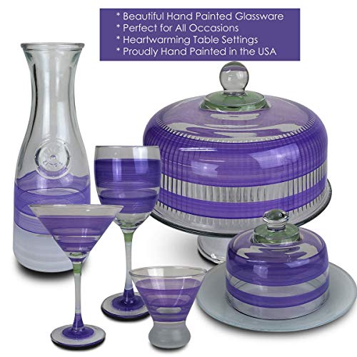 Golden Hill Studio Hand Painted Martini Glasses Set of 2 - Cape Cod Cottage Purple Collection - Hand Painted Glassware by USA Artists - Unique and Decorative Martini Glasses, Kitchen Table Décor
