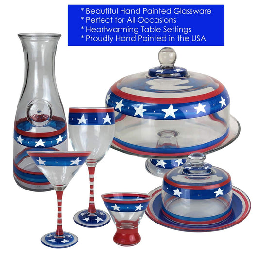 Golden Hill Studio Hand Painted Martini Glasses Set of 2 - Patriotic Collection - Hand Painted Glassware by USA Artists - Unique and Decorative Martini Glasses, July 4th Kitchen Table Décor