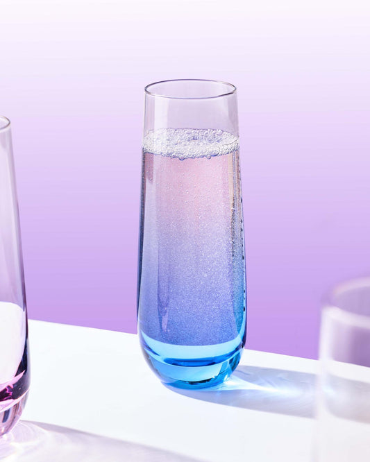 ColoVie Stemless Champagne Glasses Set of 6- Colored Champagne Flutes- Wedding Toasting Glass- Bridesmaid Gift- Mimosa Glass- Crystal Bar Glassware- Birthday Cocktail Party, 9.6oz