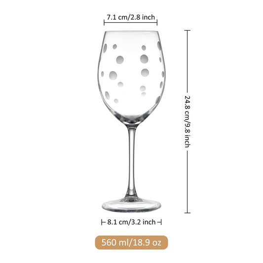 Joeyan Hand Blown Etched Red and White Wine Glasses,Stemmed Glasses with Stripes and Dots Pattern,Clear Carved Long Stem Glassware Set for Wine Tasting Birthday Anniversary Wedding,19 oz,Set of 4