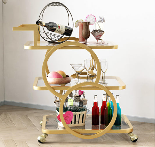 LORMITER Gold Bar Carts with 3-Tier Shelves, Rolling Bar Carts on Wheels, Kitchen Serving Cart for Dining Room, Glass Bar Carts for Home Use, Round Bar Carts, Wine Carts.