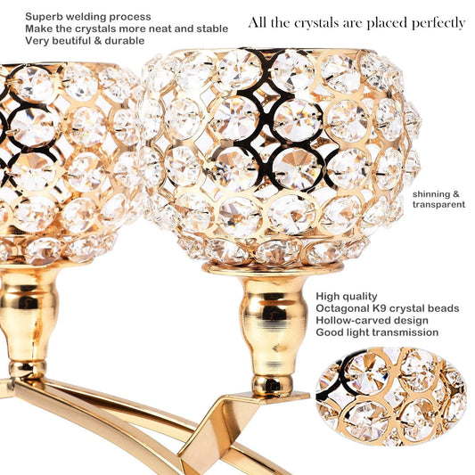 Gold Crystal Beaded Candle Holders 3 Arms Candelabra HurricaneTea Lights Candle Holder Wedding Coffee Dining Table Centerpiece Table Decorations Living Room Dinner Table Decor Gifts for Women Wife Mom