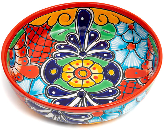 Enchanted Talavera Ceramic Hand-Painted Large Serving Bowl Pasta Bowl Fruit Bowl Salad Bowl Party Platter Holiday Bakeware Dish (Red)