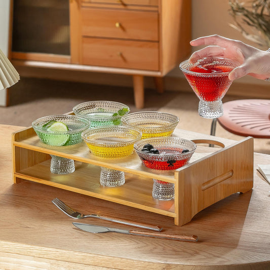 Martini Glasses Holder Set Vintage Margarita Glasses (Set of 6) Bar Glasses (7.8 Oz.) Wood Serving Tray for Martini, Cocktail, Margarita, Cosmopolitan, Manhattan, Brandy