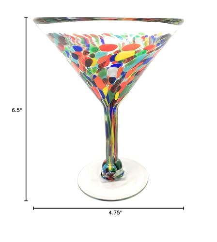 Dos Sueños Mexican Hand Blown Glass – Set of 4 Hand Blown Modern Margarita Glasses - Confetti Carmen (12 oz)