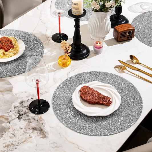 Cumouna Silver Placemat Sparkle Crushed Rhinestones Round Washable Elegant Glitter Table Mat for Fall Halloween Wedding Christams Kitchen Home Decor Housewarming Gifts (15 Inch)