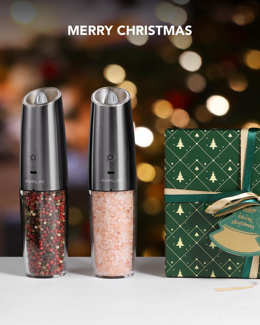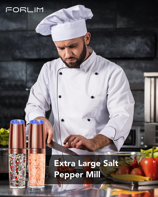 Rechargeable Electric Salt and Pepper Grinder Set, 9oz. Large Capacity Automatic Pepper Mill, Gravity One-Click Grinding One-Hand Operated, Stainless Steel Salt Grinder (Metallic Gunmetal)