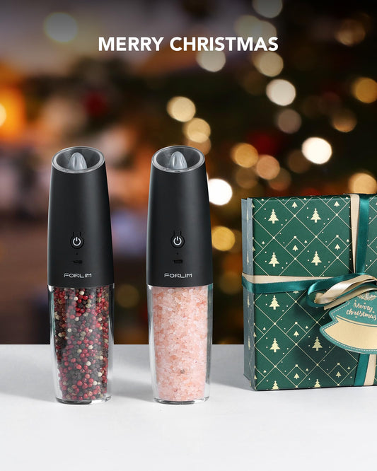 Gravity Electric Salt and Pepper Grinder Set, USB Rechargeable 9 Oz. Large Capacity, Automatic Salt Mill Set, One-Click Grinding One-Hand Operated Adjustable Coarseness Pepper Mill (Black)