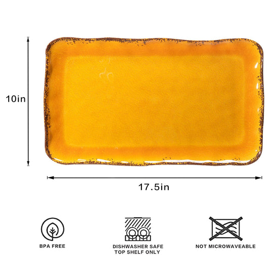 Deep Gold Melamine Farmhouse Rectangular Serving Platter Sets, 17.5" x 10" Melamine Large Serving Tray Sets,100% Melamine, Dishwasher Safe, BPA Free, Lightweight and Unbreakable,Gold